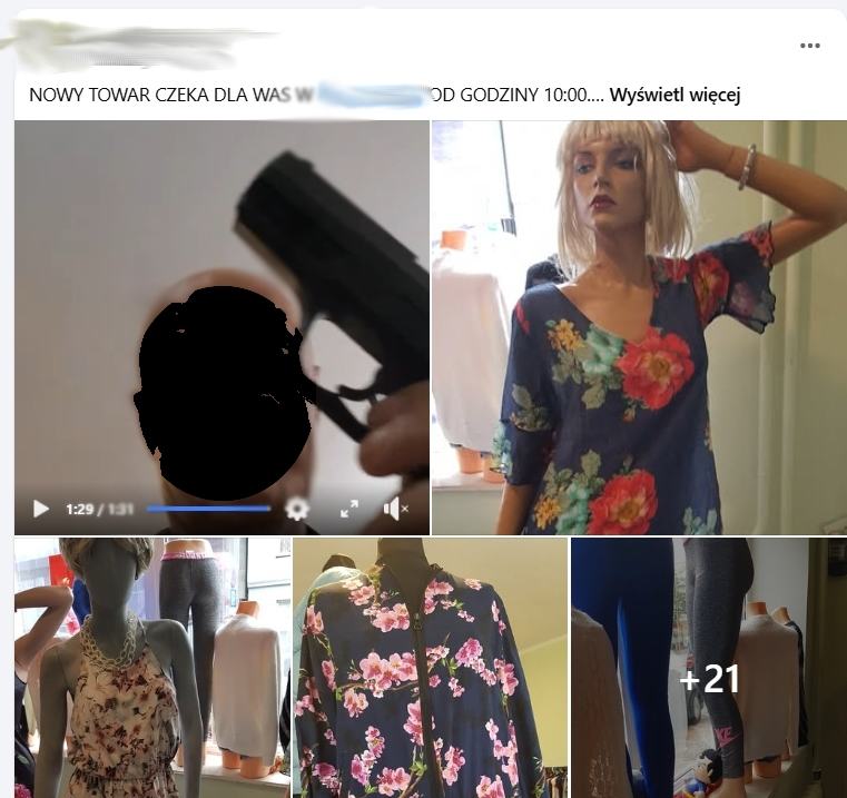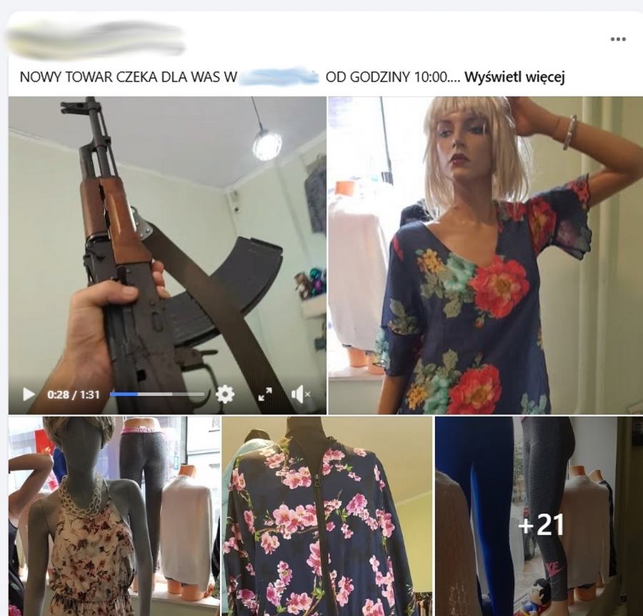 Na filmie widać m.in. obiekt przypominający karabinek AK-47 oraz broń krótką, pokazane w sposób bardzo sugestywny. Można było by pomyśleć, że stanowi element atrakcji związanej z ofertą sklepu. Całość jednak wyraźnie jest zachętą do zakupów odzieży.